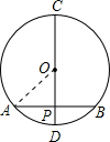 分析:连接OA,因为直径CD⊥AB,由垂径定理得到AP=BP,而AB=8cm,在Rt△OAP中,OP=3cm,利用勾股定理即可求出OA.