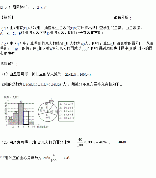 (2)求扇形统计图中m的值和E组对应的圆心角度数.