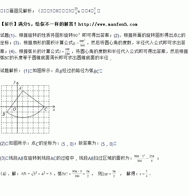 (3)线段AB在旋转到线段AC的过程中,点B经过的路径长为 ;