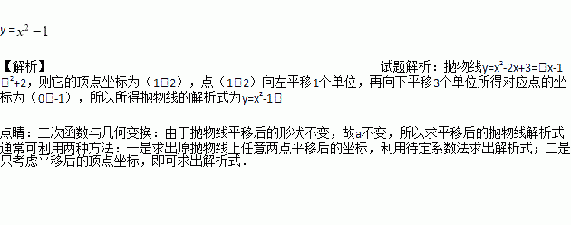 将抛物线y=x2-2x+3向左平移一个单位,再向下平移三个单位,则抛物线的解析式应为_________________.