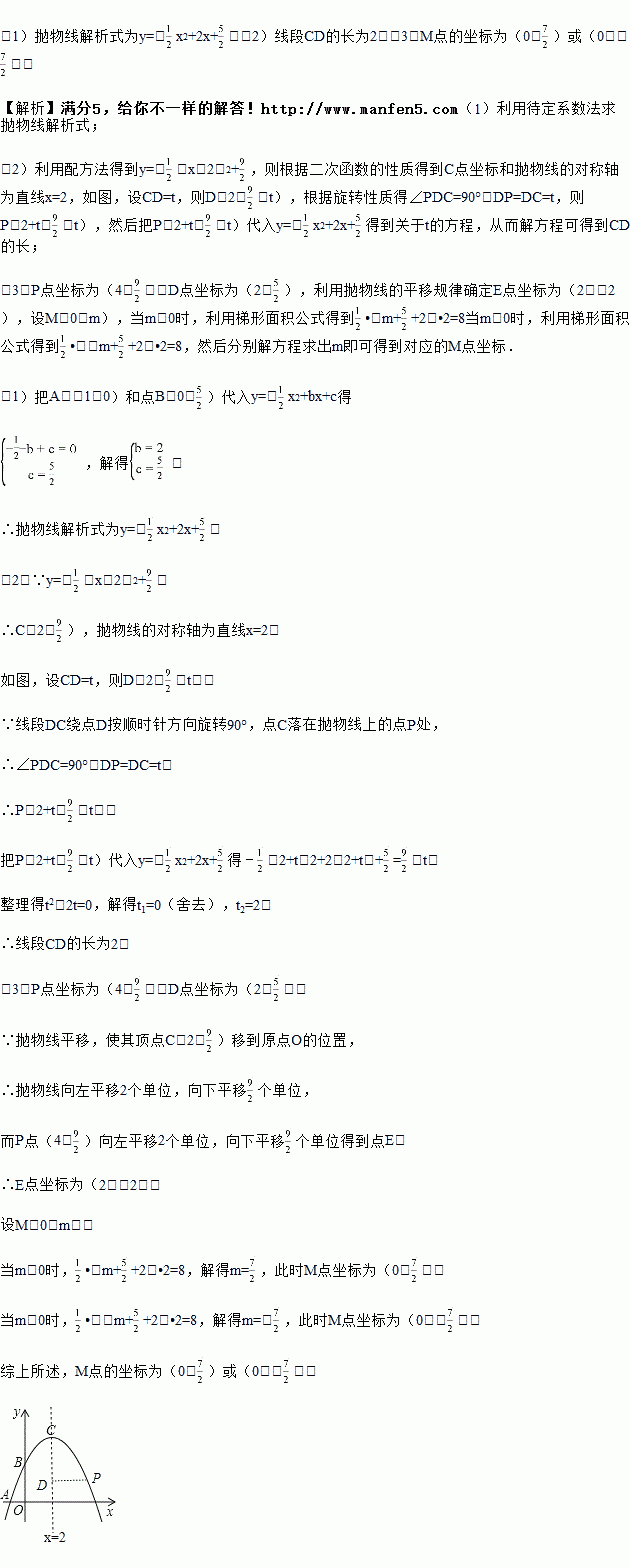 (3)将抛物线平移,使其顶点C移到原点O的位置,这时点P落在点E的位置,如果点M在y轴上,且以O、D、E、M为顶点的四边形面积为8,求点M的坐标.