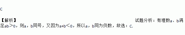 C 【解析】试题分析:有理数a、b满足ab>0,则a,b同号,又因为a+b<0,所以a,b同为负数,故选:C.