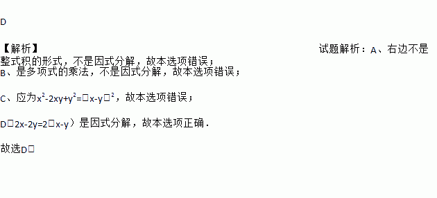 把多项式x2+ax+b分解因式,得(x+1)(x-3),则a,b的值分别是 ( )