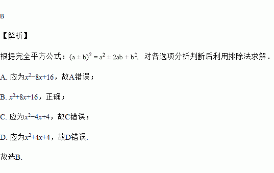 A. x2?8x?16 B. x2+8x+16 C. x2?4x?16 D. x2+4x+16