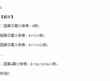 下列图案是用长度相同的火柴按一定规律拼搭而成,第一个图案需8根火柴,第二个图案需15根火柴,…,按此规律,第n个图案需几根火柴棒( )