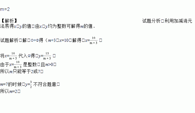 已知m为正整数,且二元一次方程组有整数解,求m的值.
