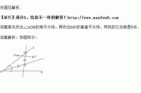如图,已知与点M、求作:一点P,使得点P到OA、OB的距离相等,且到点M与点N的距离也相等不写作法与证明,保留作图痕迹