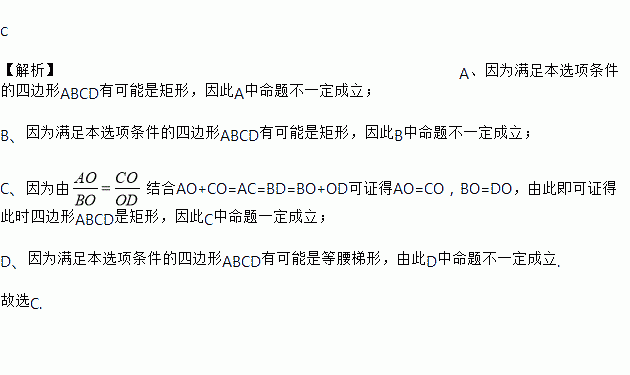 已知在四边形ABCD中,AD//BC,对角线AC、BD交于点O,且AC=BD,下列四个命题中真命题是( )