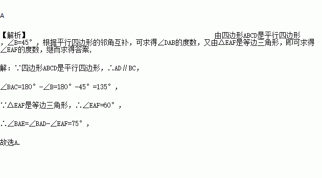平行四边形ABCD与等边△AEF如图放置,如果∠B=45°,则∠BAE的大小是( )