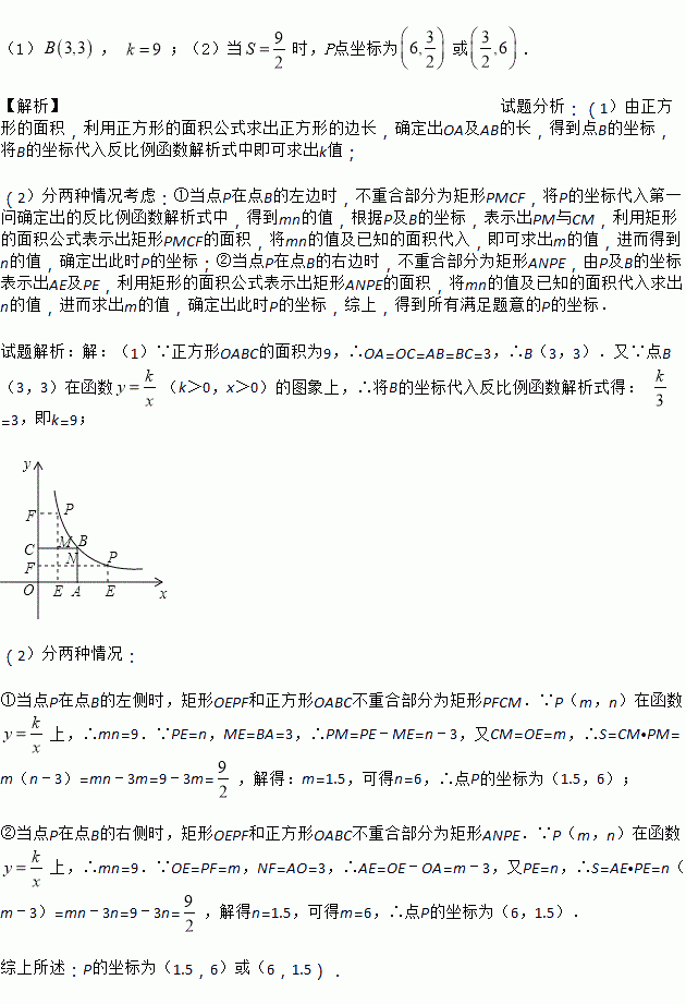 轴的垂线,垂足分别为E、F,并设矩形OEPF和正方形OABC不重合的部分(图中阴影部分)的面积为S.