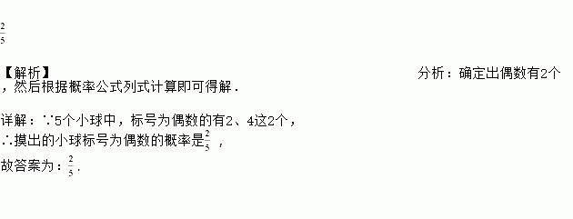 在一个不透明的盒子中,有五个完全相同的小球,把它们分别标号为1,2,3,4,5,随机摸出一个小球,摸出的小球标号为偶数的概率是_____.