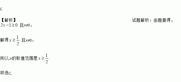 A. x≤ B. x≤且x≠0 C. x≥ D. x>且x≠0