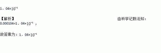 科学家发现一种病毒的直径为0.000104米,用科学记数法表示为 米.