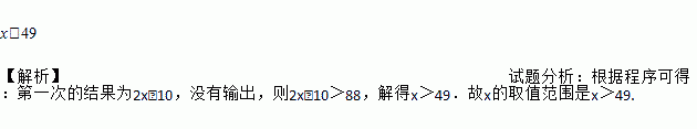 对一个实数x按如图所示的程序进行操作,规定:程序运行从“输入一个实数x”到“结果是否大于88?”为一次操作.如果操作只进行一次就停止,则x的取值范围是________.