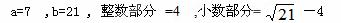 =0,求实数a, b的值,并求出 的整数部分和小数部分。