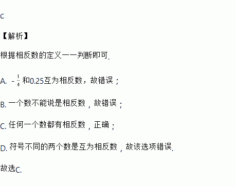 C. 任何一个数都有相反数 D. 正数与负数互为相反数