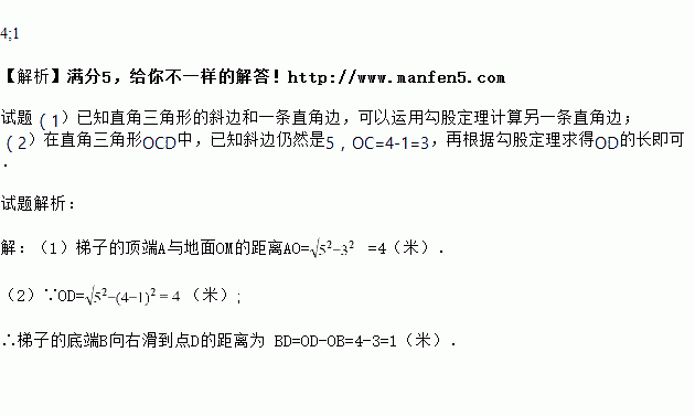 (2)若梯子的顶端A下滑1米到C点,求梯子的底端B向右滑到点D的距离.