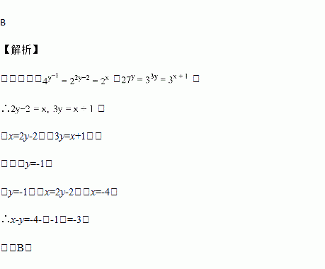 若2x=4y-1,27y=3x+1,则x-y等于( )