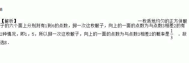 将一质地均匀的正方体骰子掷一次,观察向上一面的点数,与点数3相差2的概率是( )