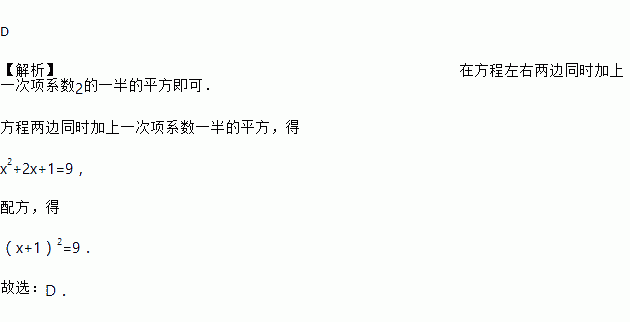 用配方法解方程x2+2x=8时,方程可变形为( )