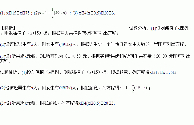 (1)张强与刘伟参加植树活动,两人共植树75棵,其中张强比刘伟多植了15棵.刘伟植了多少棵树?