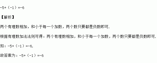 已知两个有理数相加,和小于每一个加数,请写出满足上述条件的一个算式:________.
