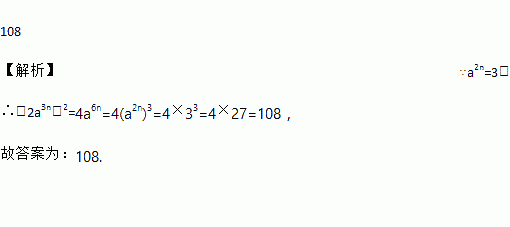 若a2n=3,则(2a3n)2=______.
