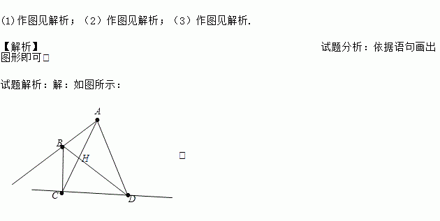 (1)作图见解析;(2)作图见解析;(3)作图见解析. 【解析】试题分析:依据语句画出图形即可. 试题解析:【解析】 如图所示: .