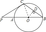 分析:先根据切线的性质证出△PCO为直角三角形,判断出∠COP的度数,再根据等腰三角形的性质和三角形内角与外角的关系求出∠B的度数,再根据三角函数和垂径定理求出BC的长即可.