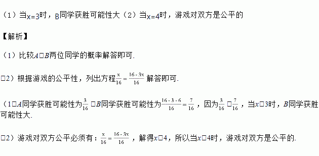 一个不透明的布袋里装有16个只有颜色不同的球,其中红球有x个,白球有2x个,其他均为黄球,现甲同学从布袋中随机摸出1个球,若是红球,则甲同学获胜,甲同学把摸出的球放回并搅匀,由乙同学随机摸出1个球,若为黄球,则乙同学获胜.