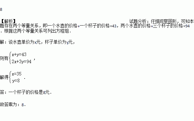 根据图提供的信息,可知一个杯子的价格是__元.