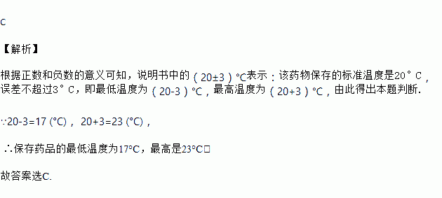 某种药品说明书上标明保存温度是(20±3)℃,则该药品在( )范围内保存最合适.