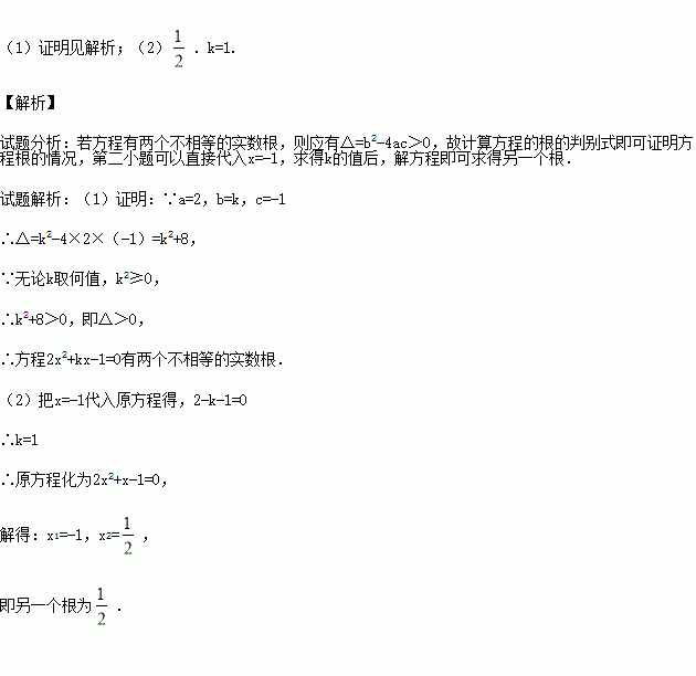已知:关于x的方程2x2+kx-1=0.