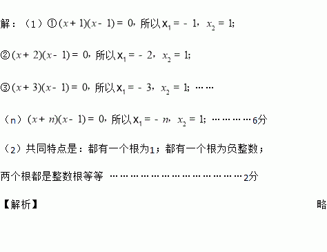 ⑴请解上述一元二次方程①、②、③、(n);