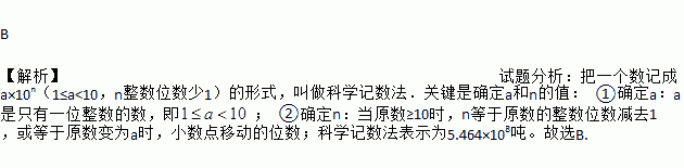A. 5.464×107吨 B. 5.464×108吨 C. 5.464×109吨 D. 5.464×1010吨