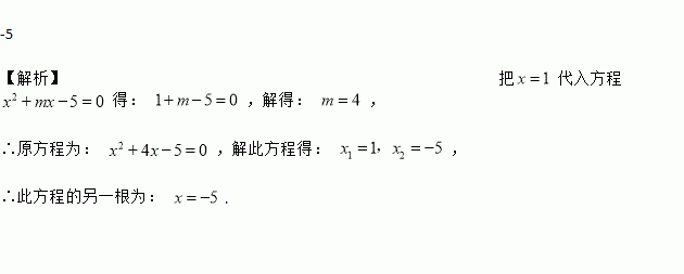 -5 【解析】把代入方程得: ,解得: , ∴原方程为: ,解此方程得: , ∴此方程的另一根为: .