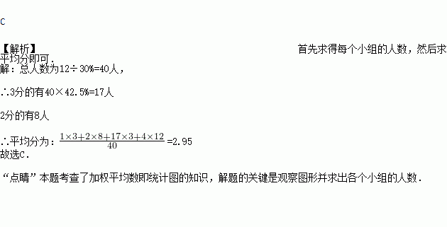 对某校八年级学生随机抽取若干名进行体能测试,成绩记为1分、2分、3分、4分共4个等级,将调查结果绘制成如下条形统计图和扇形统计图,根据图中信息,这些学生的平均分数是()