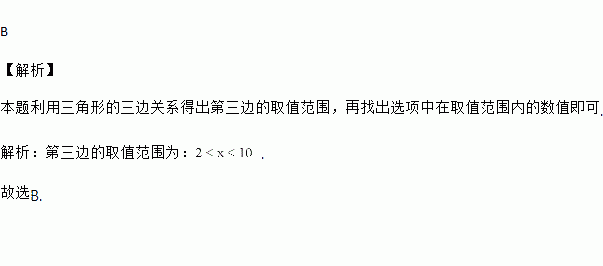 已知某三角形的两边长是6和4,则此三角形的第三边长的取值可以是 ( )
