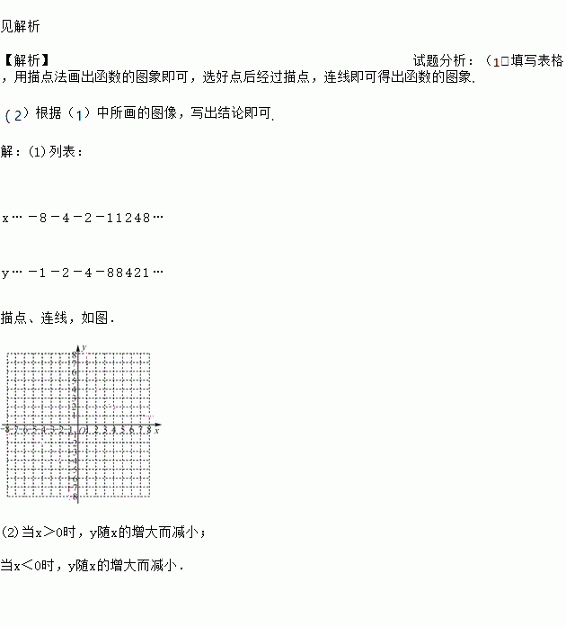 (2)从函数图象观察,当x<0时,y随x的增大而增大,还是y随x的增大而减小?当x>0呢?