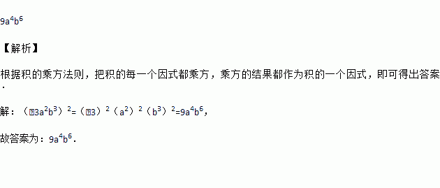 计算:(﹣3a2b3)2= .