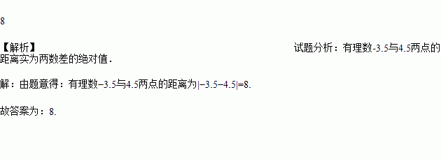 数轴上表示有理数-3.5与4.5两点的距离是___________.