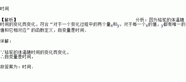 骆驼被称为“沙漠之舟”,它的体温随时间的变化而变化,在这一问题中,自变量是________.
