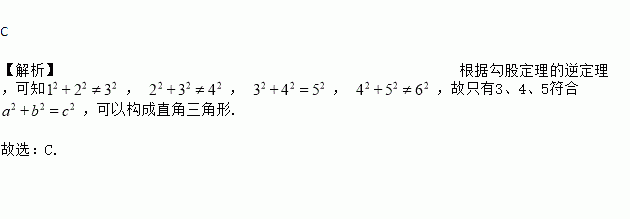 C 【解析】根据勾股定理的逆定理,可知, , , ,故只有3、4、5符合,可以构成直角三角形. 故选:C.