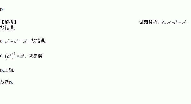 A. a4·a3=a12 B. a6÷a3=a2 C. (a3)2=a5 D. (-ab)2=a2b2