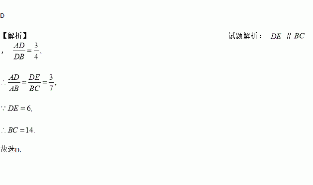 如图,在中,点D,E分别在边AB,AC上, .已知, ,那么BC的长是( )