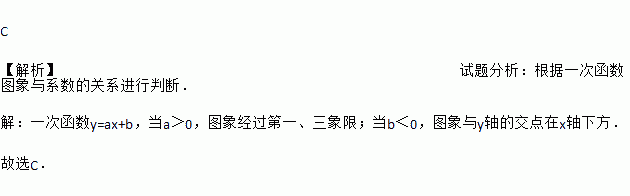 若实数a>0,b<0,则函数y=ax+b的图象可能是( )