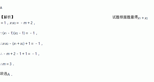 若关于x一元二次方程x2-x-m+2=0的两根x1,x2满足(x1-1)(x2-1)=-1,则m的值为( )