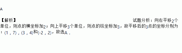 已知三角形的三个顶点坐标分别是(-1,4)、(1,1)、(-4,-1),现将这三个点先向右平移2个单位长度,再向上平移3个单位长度,则平移后三个顶点的坐标是( )