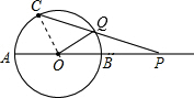 分析:已知如图,连接OC,根据条件可得:∠A0C=60°,设∠CPO=x°,由隐藏条件:OQ=OC可得∠OCQ=∠CQO,再利用三角形外角和定理可建立关于x的方程,求出x的值即可得问题答案,本题还有其他两种情况,解答过程同上.