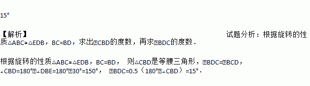 如图所示,把一个直角三角尺ACB绕着30°角的顶点B顺时针旋转,使得点A落在CB的延长线上的点E处,则∠BDC的度数为 度.